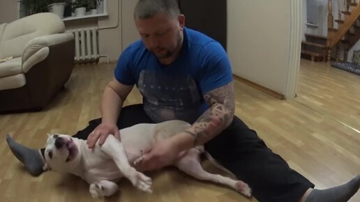 Массаж спины и задних лап собаки спинальника.