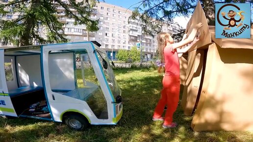 Дети и Машина. Строим двухэтажный дом и домик из картона. Манкиту