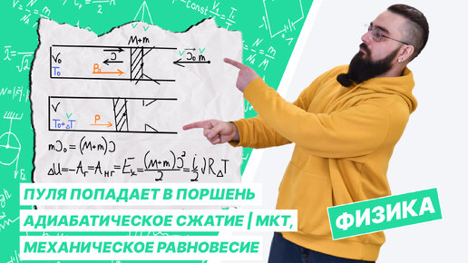 Пуля попадает в поршень, адиабатическое сжатие | МКТ, механическое равновесие