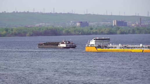 Расхождение грузовых теплоходов на Волге. Танкер ТЕТИС и сухогруз КИРОВСК