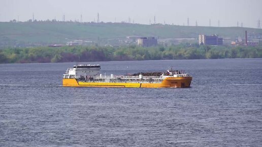 Теплоход ТЕТИС идет вниз по Волге на Красноармейский рейд и расходится с теплоходом КИРОВСК