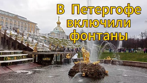В Петергофе уже включили фонтаны⛲. Снег лежит, трава и водные струи. 21 апреля