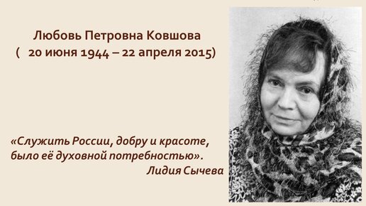 Любовь Ковшова: СЛУЖИТЬ РОССИИ, ДОБРУ И КРАСОТЕ...