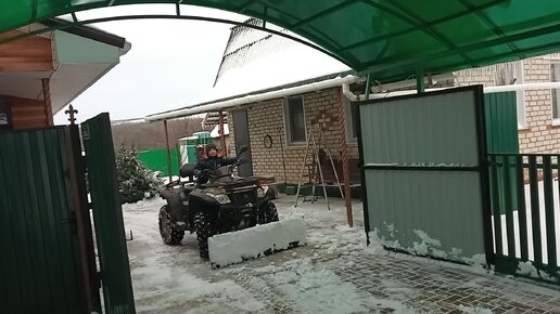 Очистка снега. Квадроцикл с самодельной лопатой.