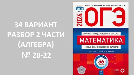 Вариант № 34 ОГЭ 2024 по математике из сборника Ященко 36 вариантов. Разбор 2 части. (алгебра). № 20-22. Готовимся вместе к ОГЭ 2024!!!