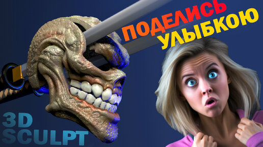 Маска Черепа с Катанами в Zbrush | Speedsculpting Concept