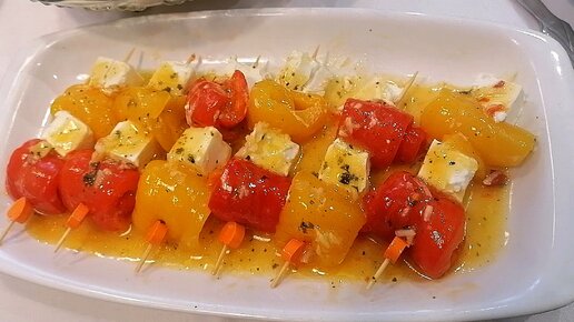 Закуска из маринованных болгарских перцев с кубиками феты. Рецепт в описании.