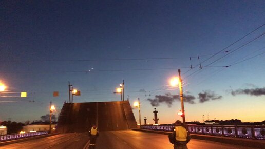 Разводка Дворцового моста в Санкт-Петербурге. Снято с уникального места - с проезжей части самого Дворцового моста.