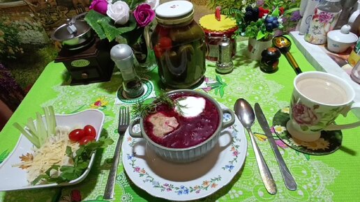 Борщ, пельмени с сыром, кофе