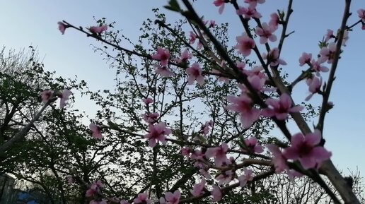 Цветения персика, пение разных птиц, кто любит весну, все зеленеет