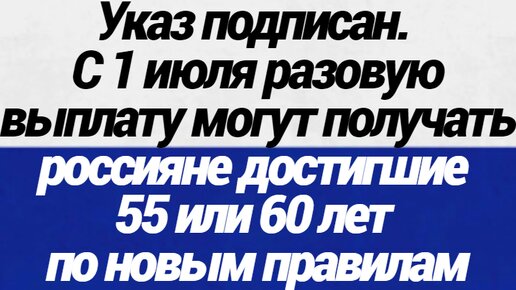 Указ подписан. С 1 июля разовую выплату могут получать россияне достигшие 55 или 60 лет по новым правилам, рассказываю, что удалось узнать