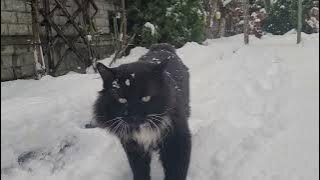 Котя бегает по снегу #kurilianbobtail #курильскийбобтейл #котвидео #снегопад #kurilian #кот #снег
