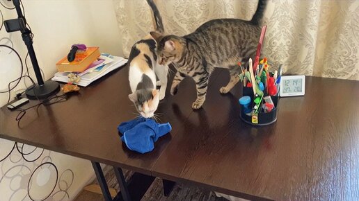 Кошки и уборка: Стеша и Тая отлынивают от домашних обязанностей