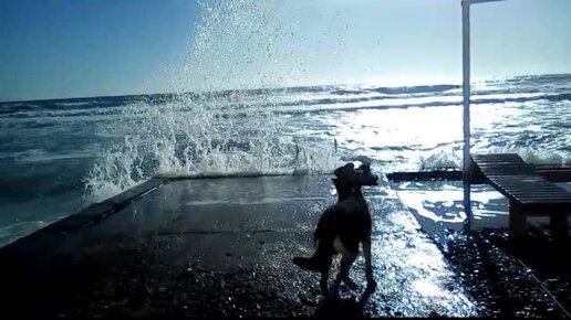 Анапа. Собака- ловец волн. Пляж"Малая бухта".