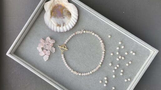Как сделать чокер: колье из розового кварца и натурального жемчуга своими руками, идея референс из пинтерест. Какие серьги можно - в видео