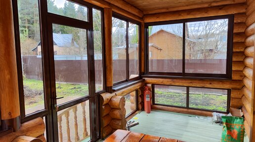 Раздвижное остекление в срубе. Терраса и мансарда.