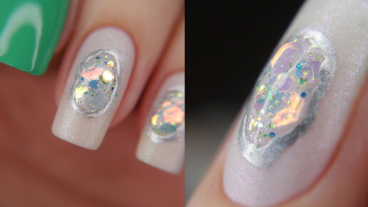 Маникюр в корейском стиле, объемный сияющий камень (обычный лак)