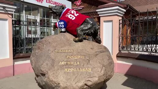 Рычащий памятник медведю в Ярославле переодели в форму вратаря Локомотива Исаева