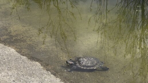 Красноухая черепаха в московком пруду! Выжила после зимы или стала не нужна?