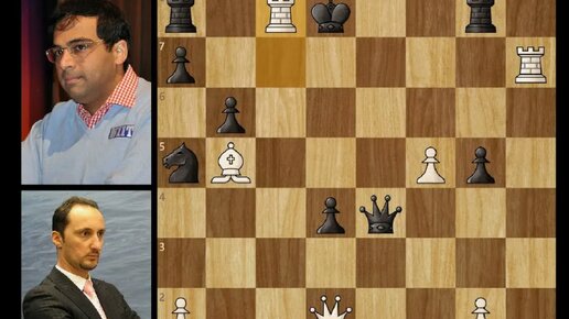 Виши Ананд черными против Веселина Топалова с победой в Софии, 2010. Ферзевый гамбит, защита Ласкера, 0-1