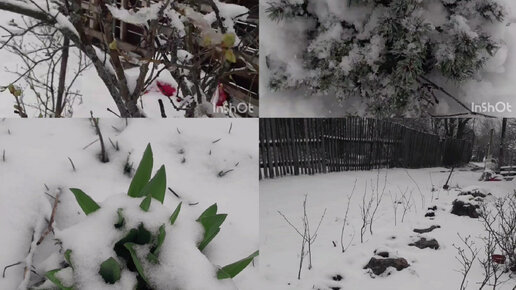 25 апреля, а на Урале выпал снег. Живая изгородь из ирги.