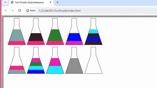 Программирование игры Sort Puzzle (переливашки) на javascript