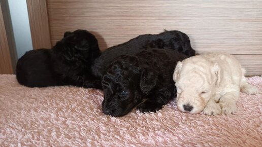 Щенки карликового пуделя. Возраст 21 день. Первый прикорм.