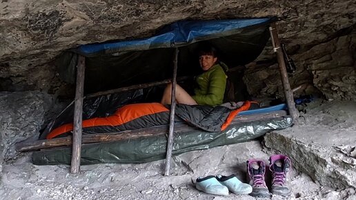 САМА ОБУСТРОИЛА ГРОТ на ВЫСОТЕ и ПЕРНОЧЕВАЛА в НЁМ.