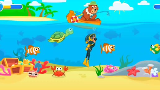 Мультфильм Игра для малышей Рыбалка с Мишкой 🐻🐬🦑
