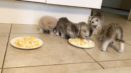 Котята кошки Кайли кушают варёное яйцо 🥚