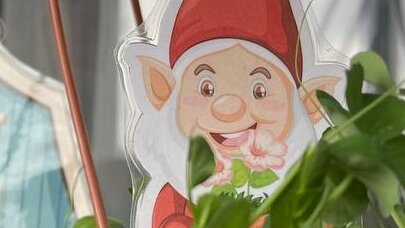 Оформление огорода на подоконнике в детском саду: гномы с инструментами на шпажках