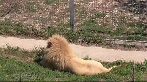 Лев Чип быстро набрал форму в саванне парка львов Тайган