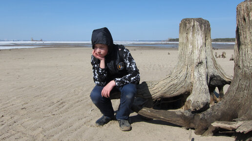 Бердск. С внуком к затопленному селу Бердскому у острова "Хреновый". Апрель 2024 год.