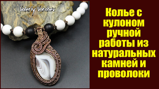 Колье с кулоном ручной работы из натуральных камней и медной проволоки. Мастерская Рукодел. Автор: Валерий Воробьев.