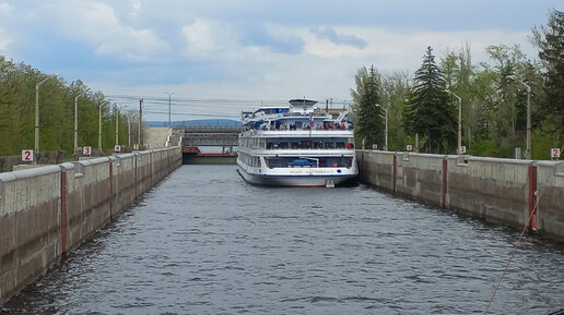 Россия: увлекательное путешествие на теплоходе по Волге. Подходим к Жигулевской ГЭС рядом с Тольятти