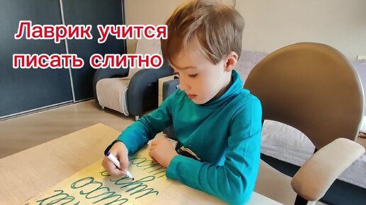 Лаврик активно готовится к школе. Учится писать письменные буквы и изучает состав числа 5