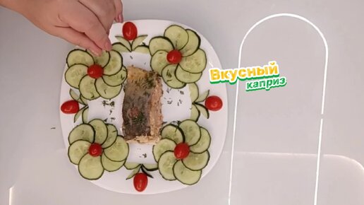 Ловите рецепт утончённого, запечённого в духовке филе горбуши, поданного на цветочном панно из огурца и томатов черри