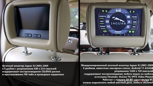 Jaguar XJ 2003-2009 модернизация мониторов для задних пассажиров