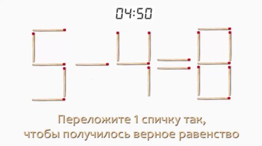 Задача 8. Переложите 1 спичку так, чтобы получилось верное равенство (5 - 4 = 8)