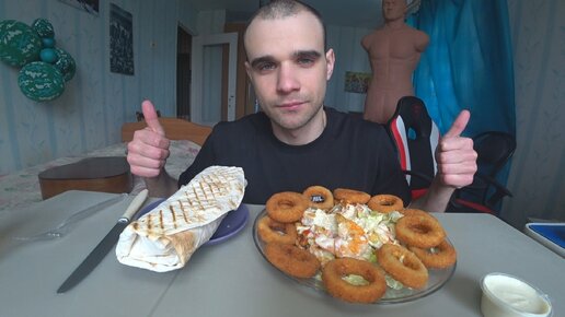 МУКБАНГ ШАУРМА БАВАРСКАЯ / ЦЕЗАРЬ С КРЕВЕТКАМИ / ЛУКОВЫЕ КОЛЬЦА / ОБЖОР / EATING Mukbang ASMR АСМР