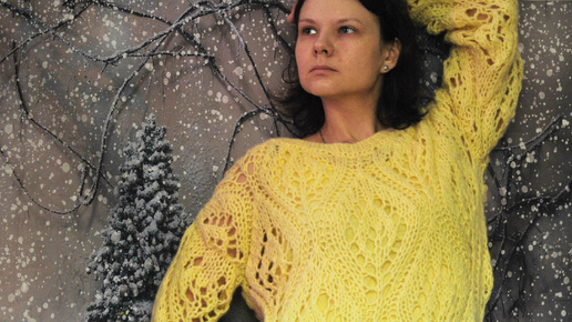 Джемпер из альпаки узором «листья» в стиле итальянского бренда БРУНЕЛЛО КУЧИНЕЛЛИ. #джемпер_спицами