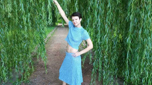 Далее: Эластичное закрытие спицами низа летнего костюма, состоящего из юбки и кофточки.