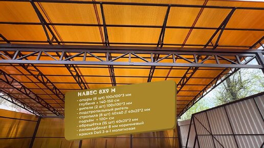 Навес на 3 машины 9*8 | Односкатный навес из поликарбоната на три автомобиля от #Спецкаркас