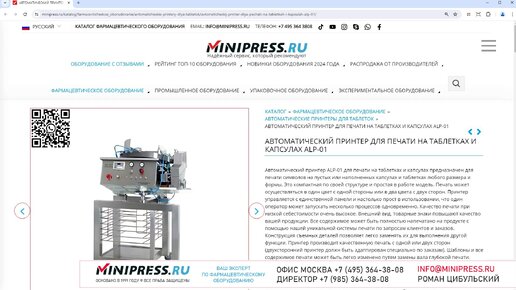 Minipress.ru Автоматический принтер для печати на таблетках и капсулах ALP-01