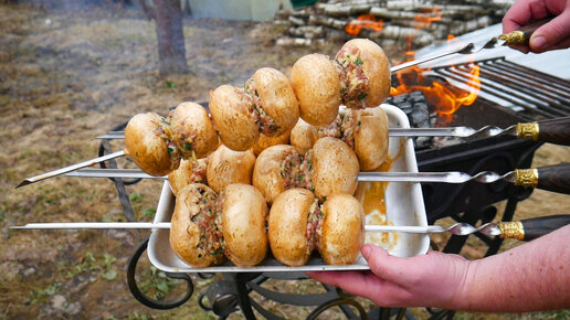 С такими грибами и шашлык не нужен - Грибы фаршированные мясом на мангале. Новый рецепт.