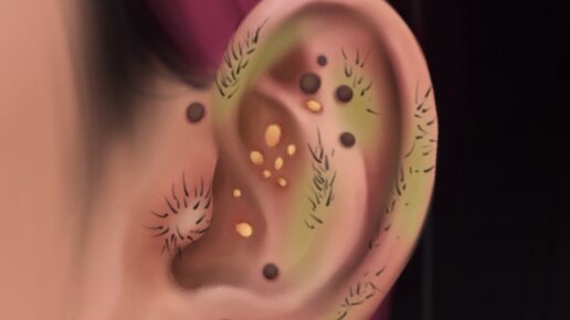 Лечение ушей. Удаление грязи, родинок, волос и гнойя из уха. Чистка ушей от серы. АСМР симулятор косметолога.