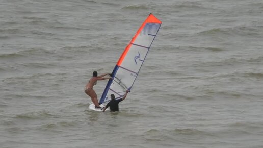 Упорная девушка и терпеливый инструктор учатся владеть капризной доской. Так хочется поймать ветер и улететь под парусом