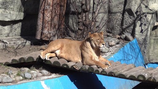 Львица Найтирия принимает солнечные ванны. 27.04.2024