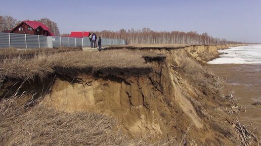 Вода подмыла крутой берег в селе Ленинское под Новосибирском