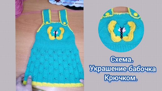 Бабочка-украшение крючком. Схема. Как я оформляю, пришиваю на сарафан, связанный спицами для внучки.